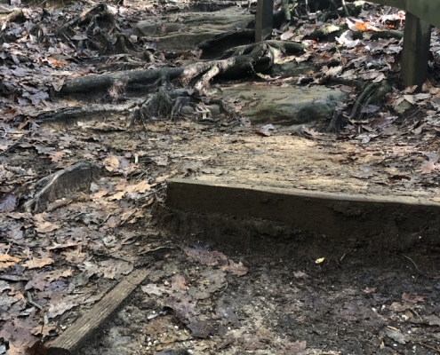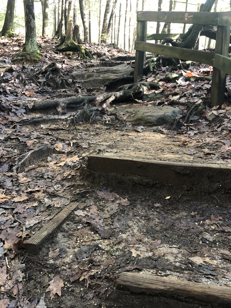 At the start of trailhead you will be peering up the wooden steps that will take you up onto the rim of Conkles Hollow. Don’t panic or feel overwhelmed, a good and steady pace will get you to the top and there are places to rest and sit along the way. The steps are usually wet or damp and can be slippery, I gave myself a good slip there. (Normally, what happens on the trail stays on the trail BUT for my readers, I’ll take the shame and share)