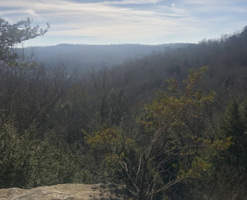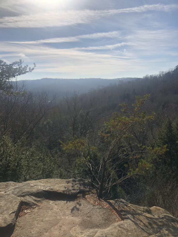Once you reach the top, the trail is well marked and you’ll begin your hike around the rim. Large root systems, loose rocks and occasional mud are part of this hike. Watch your footing as you gaze into the beautiful horizon of Hocking Hills. This hike is absolutely breathtaking anytime of the year and worth coming to see in every season.
